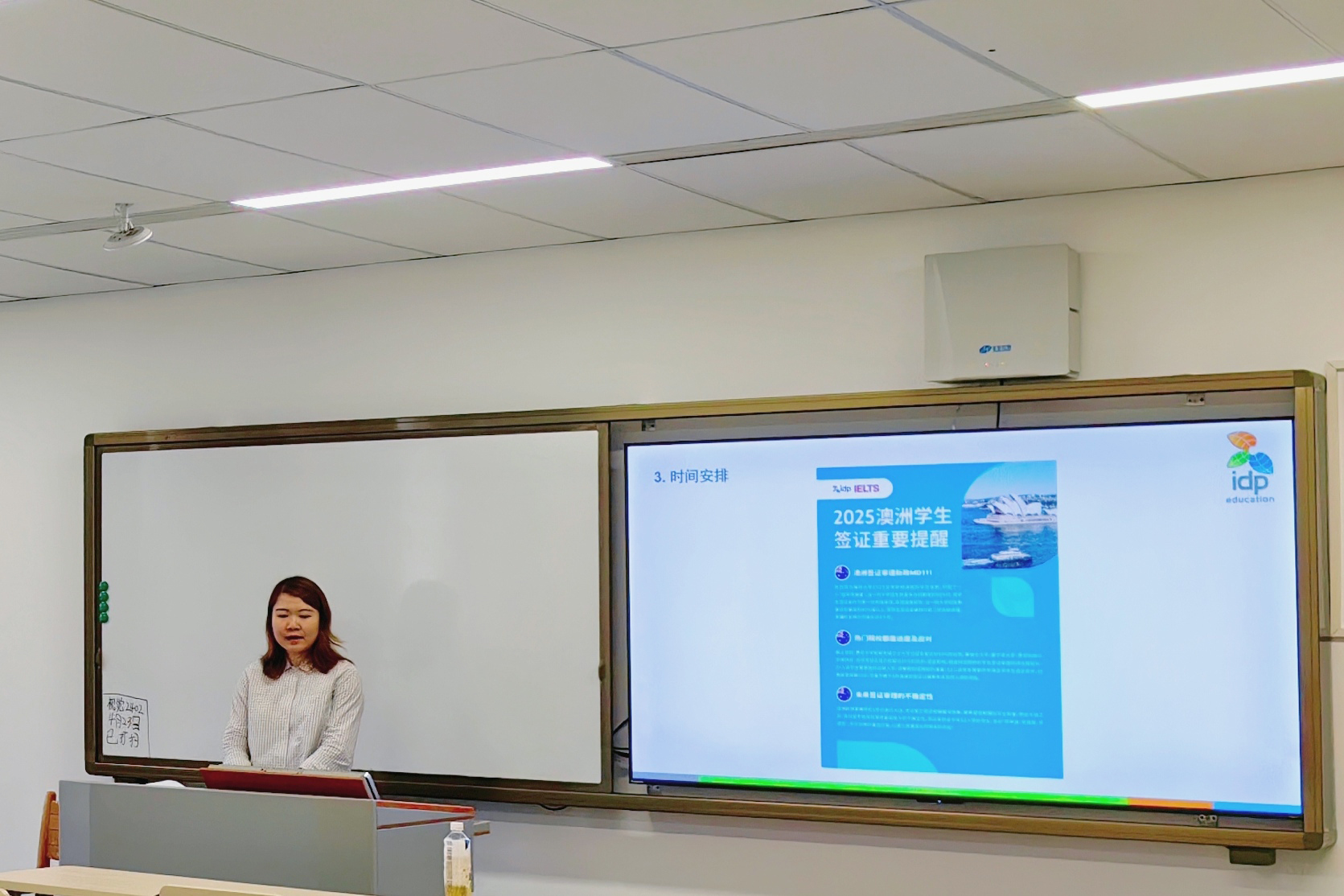 为督促2023级双学位项目学生做好申请澳洲签证的准备工作,指导学生提前整理所需的各项材料,4月24日,3044永利在第九教学楼402课室举办了澳大利亚阿德莱德大学国际联合培养“2+2”项目签证指导会。IDP教育集团广州办公室罗序,3044永利留学服务中心项目负责人李妍、项目负责人郑琬筠及2023级国际商务专业和金融学专业全体学生参加了此次活动。