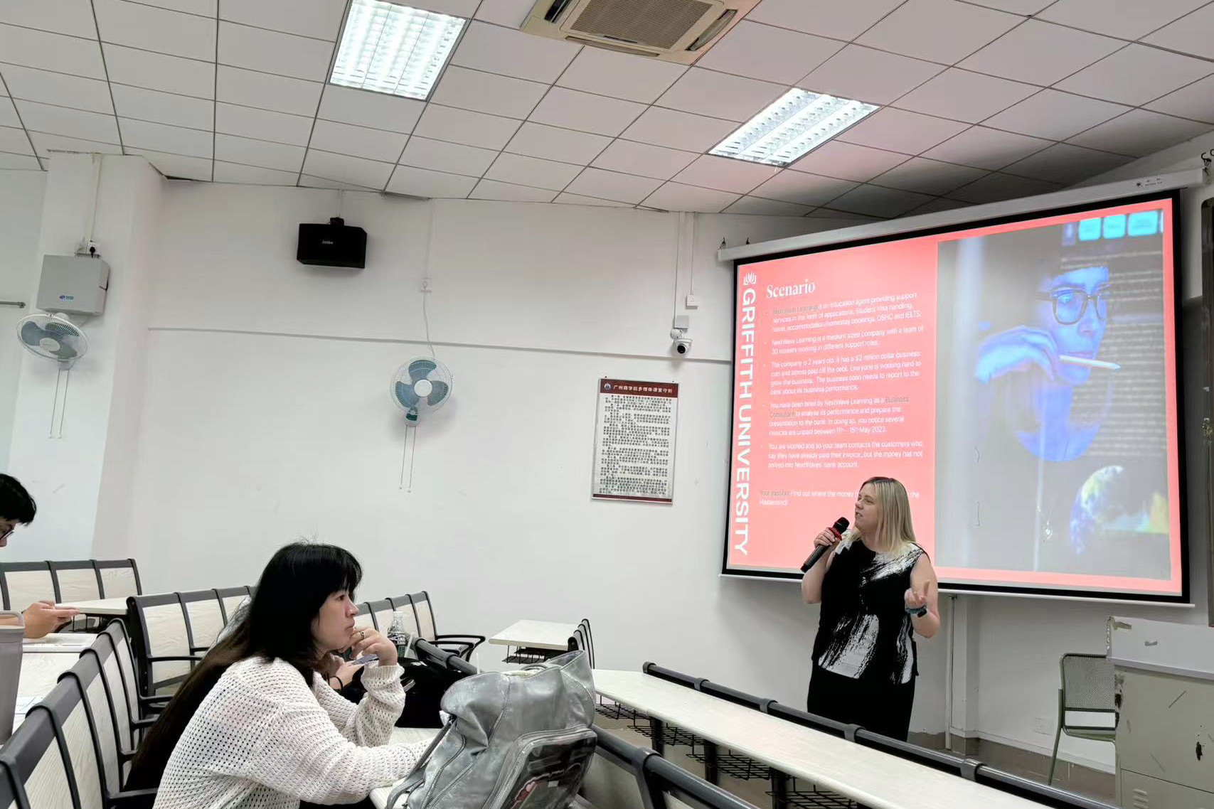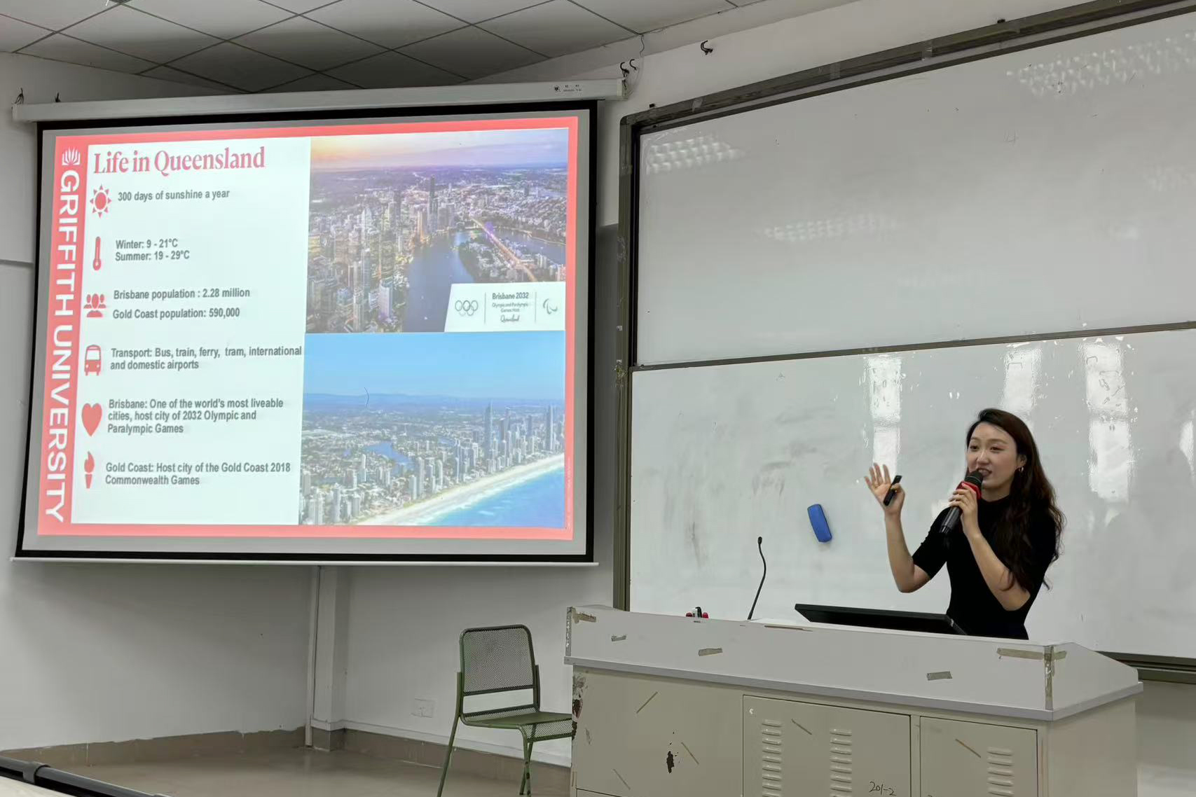 示范课开始前,赵红梅全面介绍了格里菲斯大学的校园环境和办学情况,让学生们对这所大学有了更深入的了解。