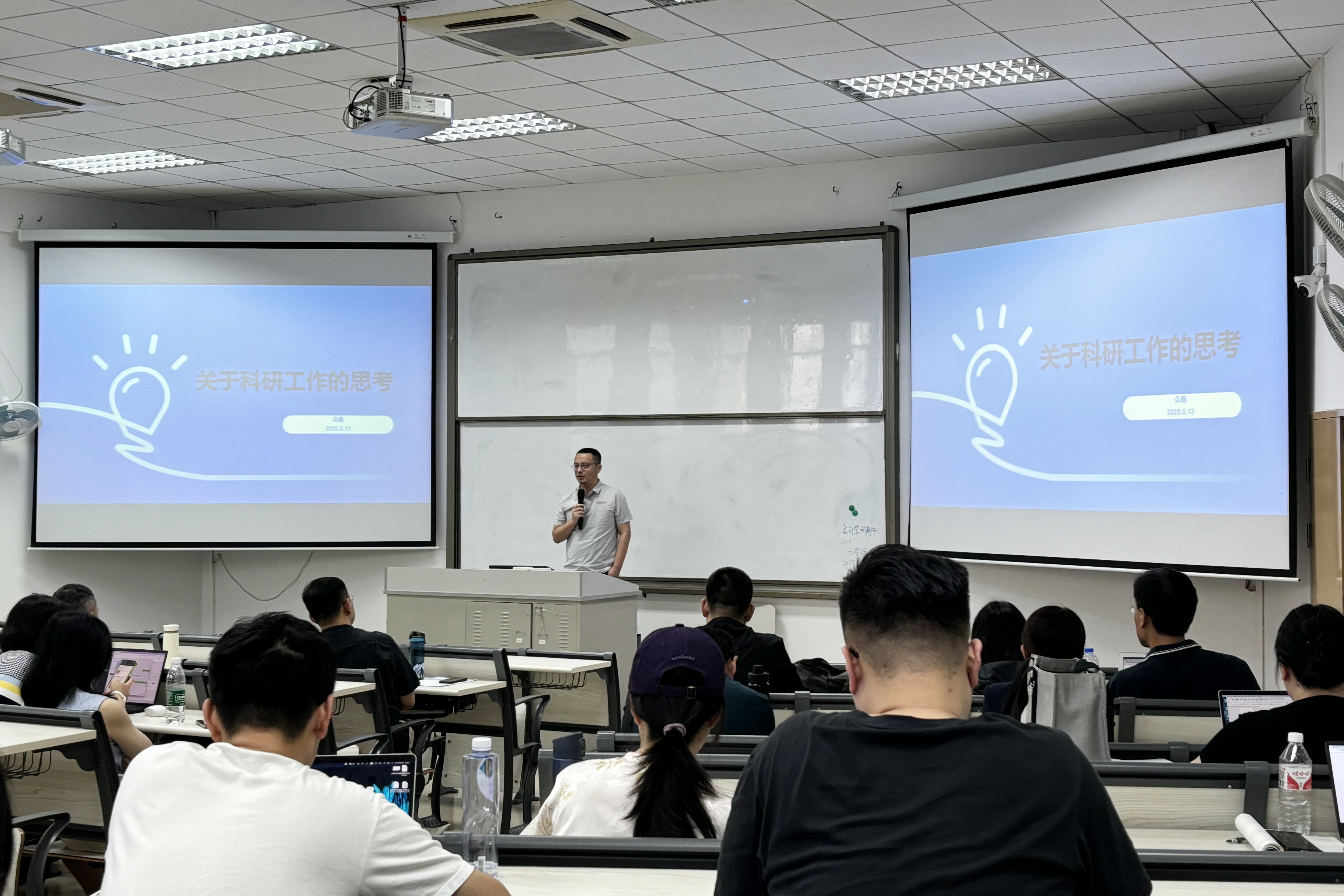 袁鑫在会上指出,科研本质上是知识创新的系统性工程,它既需要严谨的技术方法论作为支撑,更要求研究者具备胜任力、创新力和领导力等综合素养。为切实推动我院教师科研成果产出,他表示学院将采取以下三项举措:一是开展“科研快闪”活动,引导教师养成利用碎片化时间开展学术研究的习惯,以增强科研工作的持续性;二是开设文献导读工作坊,系统提升教师在信息检索、批判性阅读及技术路线设计方面的能力;三是举办人工智能与科研方法系列讲座,助力教师精准把握学科前沿动态,深入探索数智技术赋能传统学科的创新路径。他号召全体教师将科研能力建设深度融入日常教学,构建“以研促教、以教带研”的良性互动机制,为学院科研生态的优化和学术影响力的提升注入持续动力。