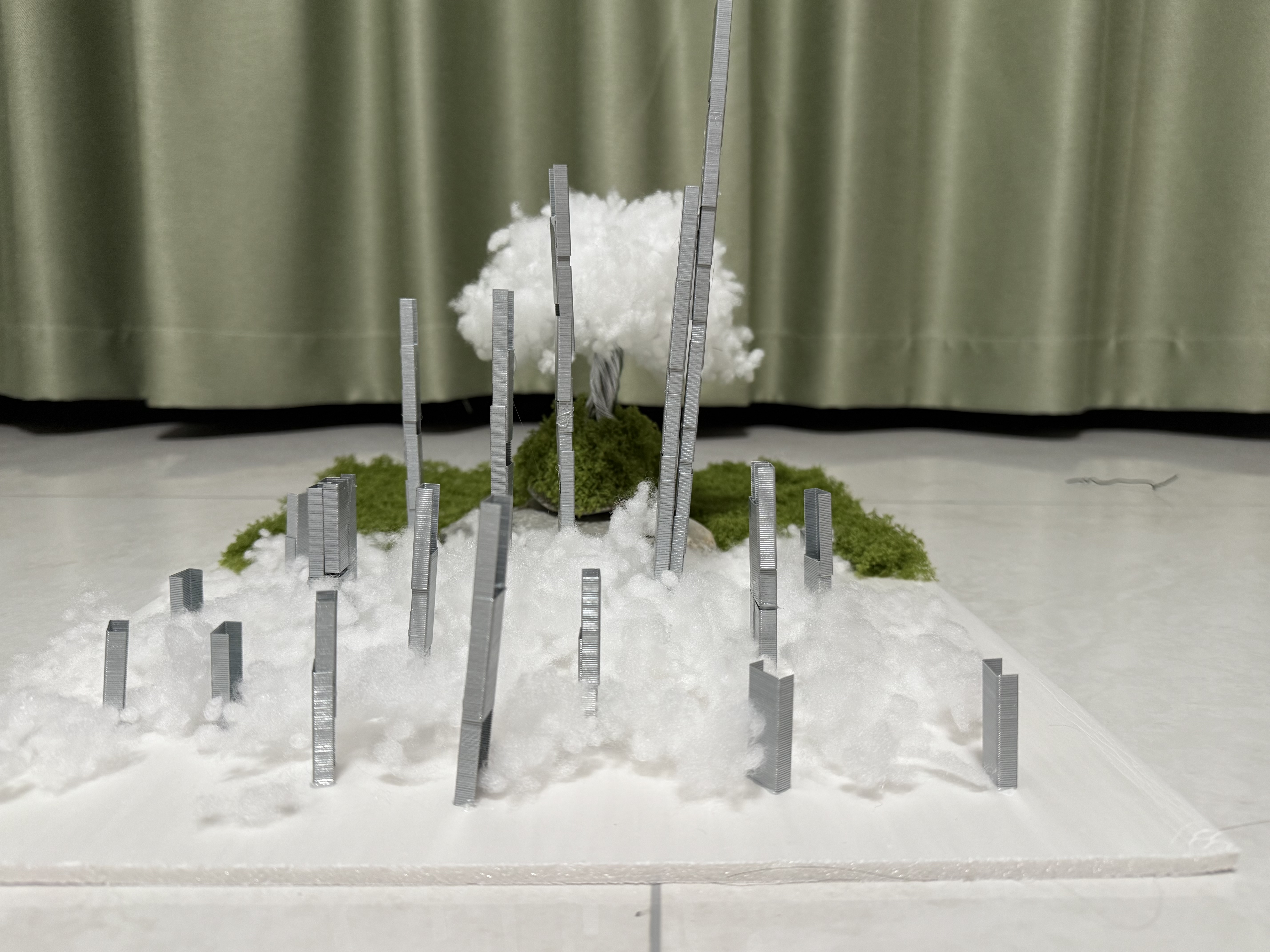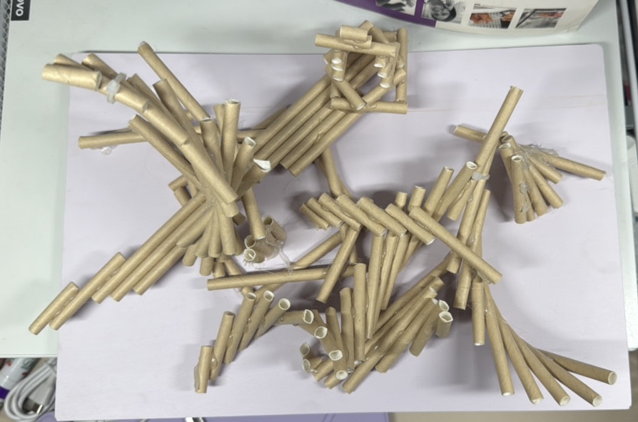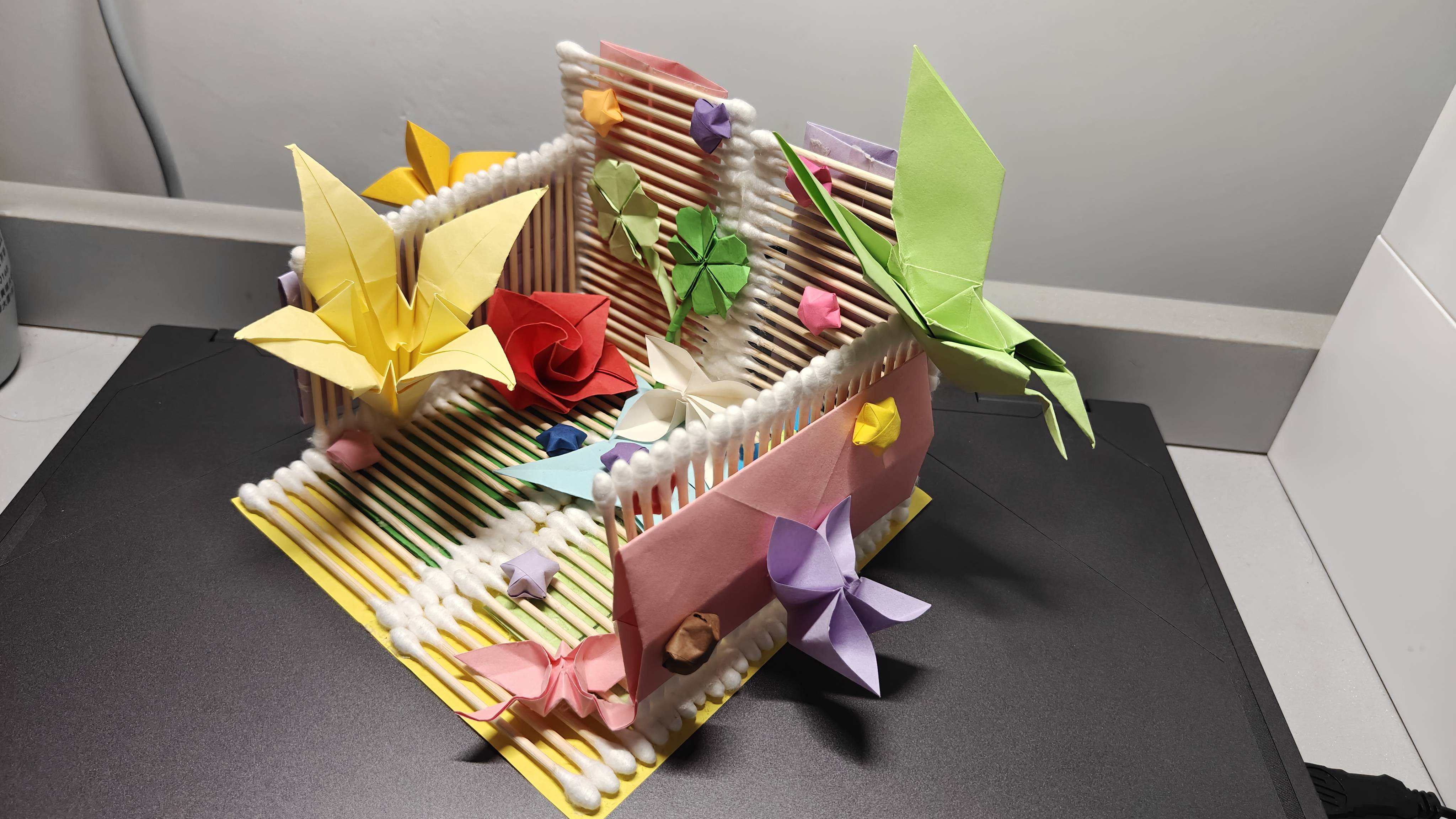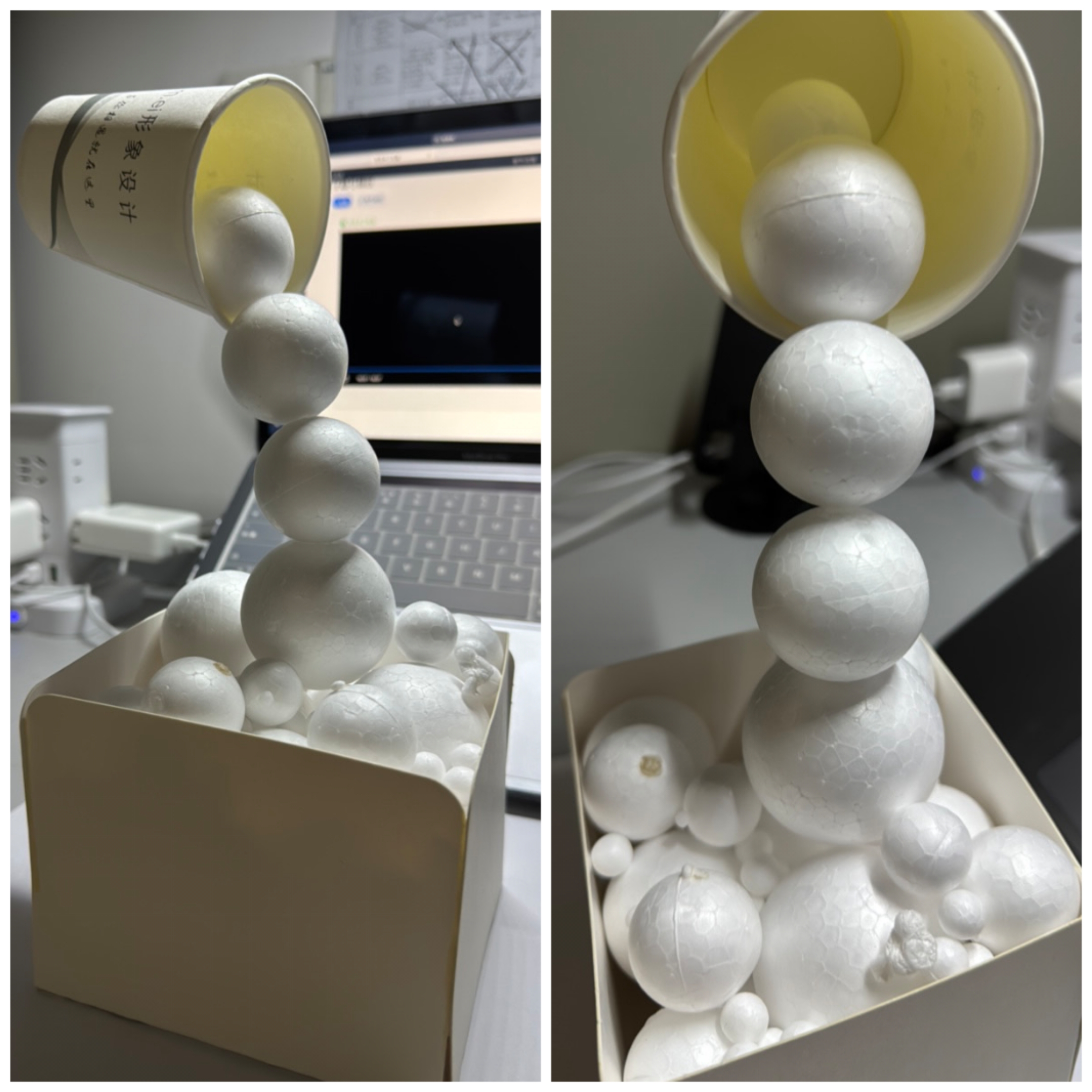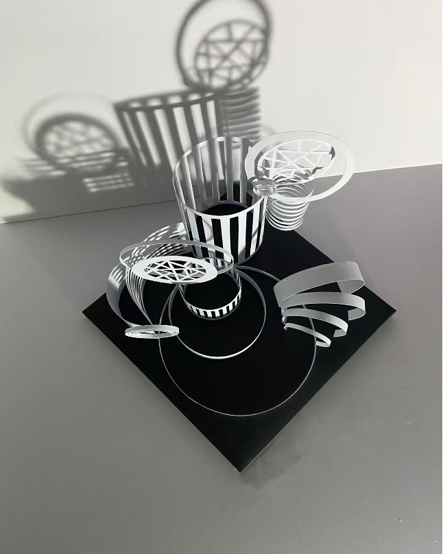 题目2:完成立体构成作业——通过对材料、空间、形态等要素的组合与塑造,培养三维空间思维与造型能力。