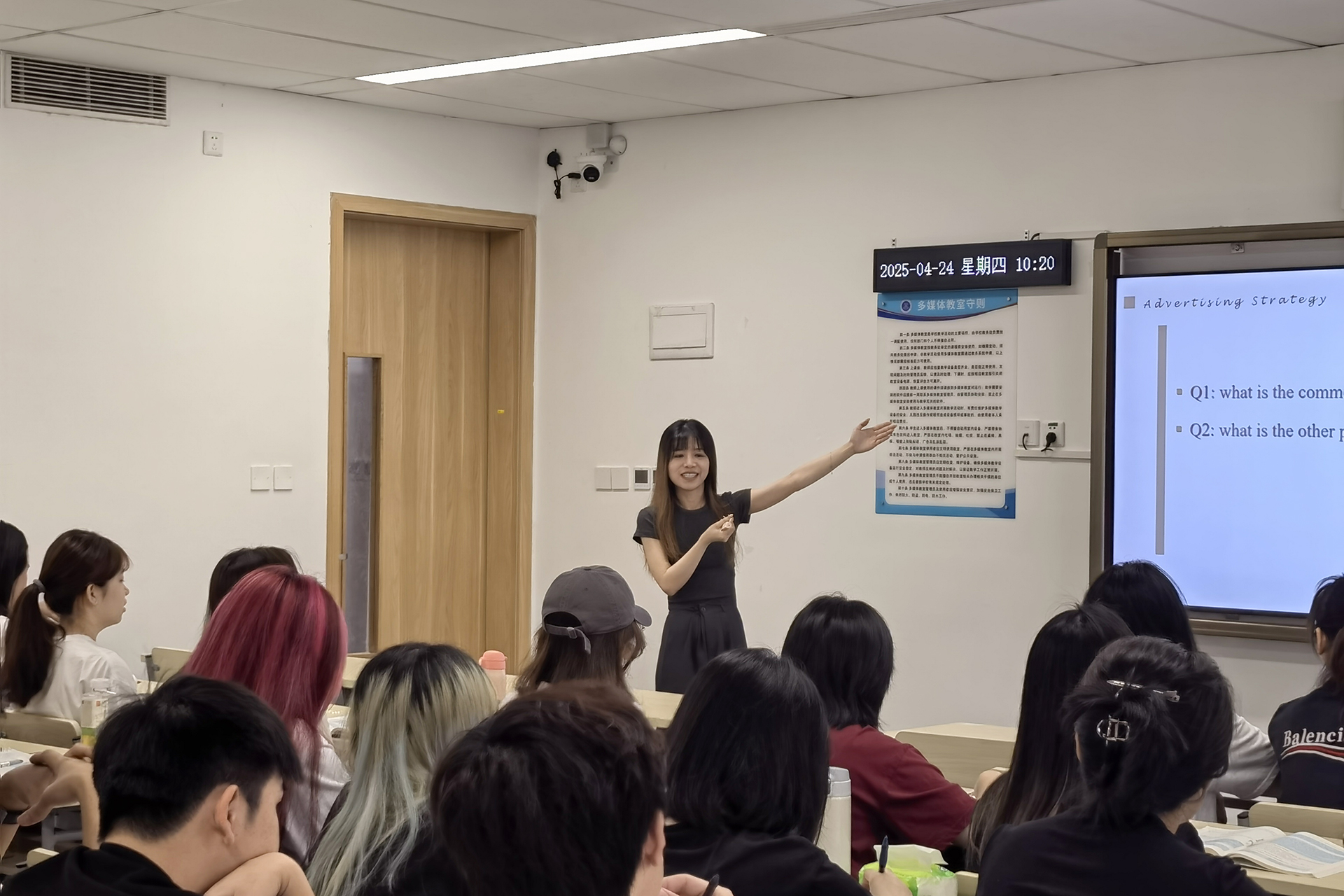 本次公开课聚焦商务英语专业核心课程《商务英语写作》,由商务英语教研室专任教师林运儿主讲。课程伊始,林老师以启发式教学法引导学生思考广告的定义,通过问题引导与互动讨论,激发学生对广告概念和文本的兴趣。为增强教学的直观性和实践性,林老师精心挑选了两则具有代表性的广告视频案例,借助多媒体教学手段生动展示,并引导学生就广告文本策略展开讨论。在案例解析环节,林老师以结构化广告文本为例,深入剖析了其中的叙事逻辑、修辞策略以及跨文化传播要素。在本节课尾声,林老师布置了下节课的文本练习任务。