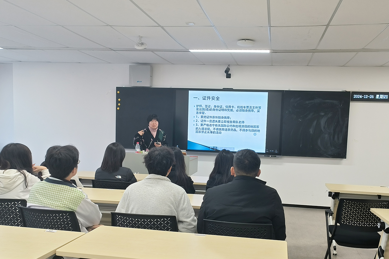 留学服务中心的李妍老师为同学们分享了关于游学期间安全教育的相关内容。李老师深切地提醒同学们要关注证件安全、财物安全以及个人人身安全,使同学们意识到在异国他乡必须时刻保持警觉,做好安全防范措施;并且也着重强调了同学们应保持与家人和学校之间的通讯畅通,及时通报行程动态和安全状况,以确保在异国他乡能够平安无虞。