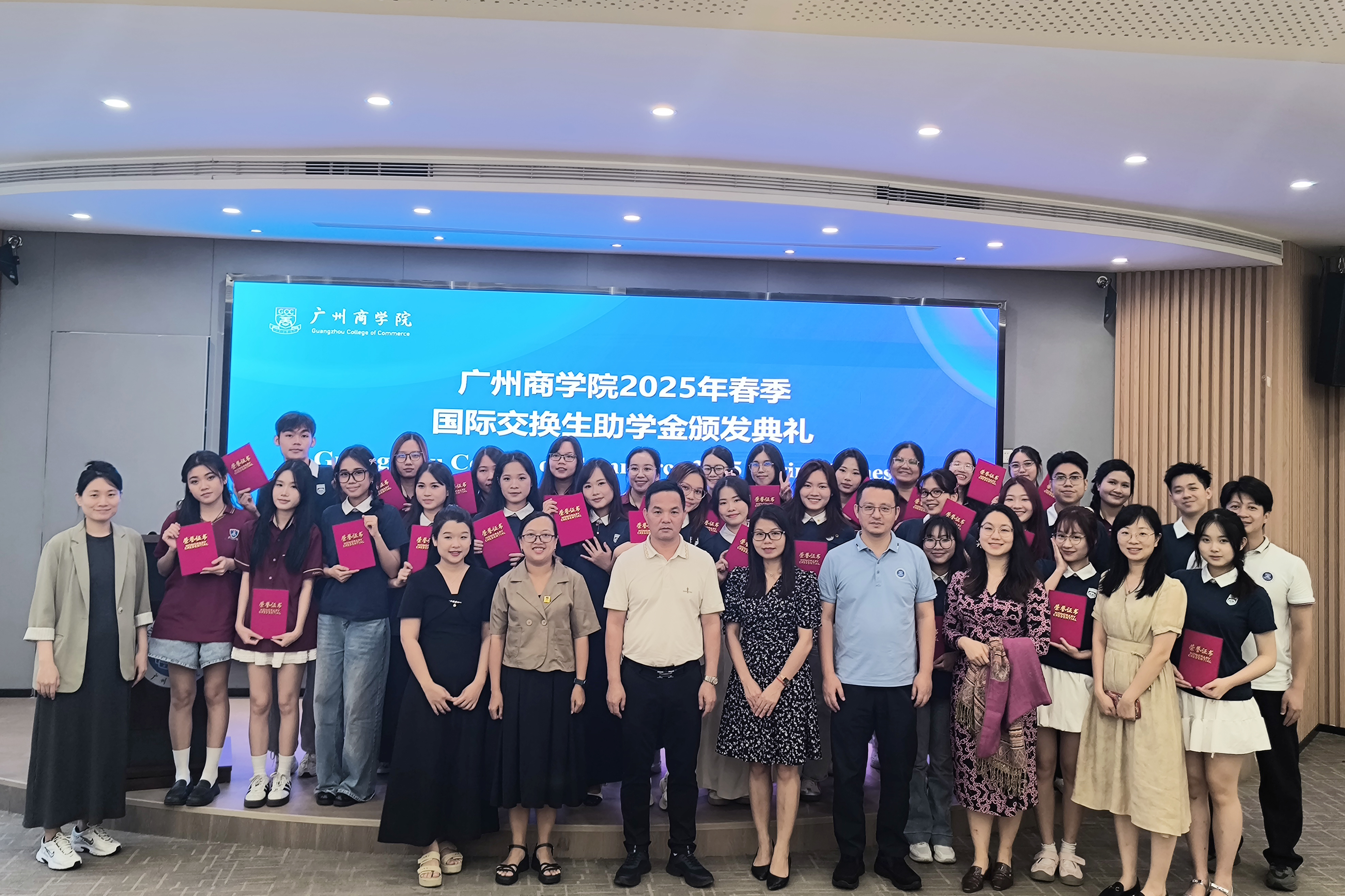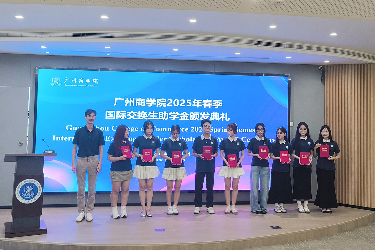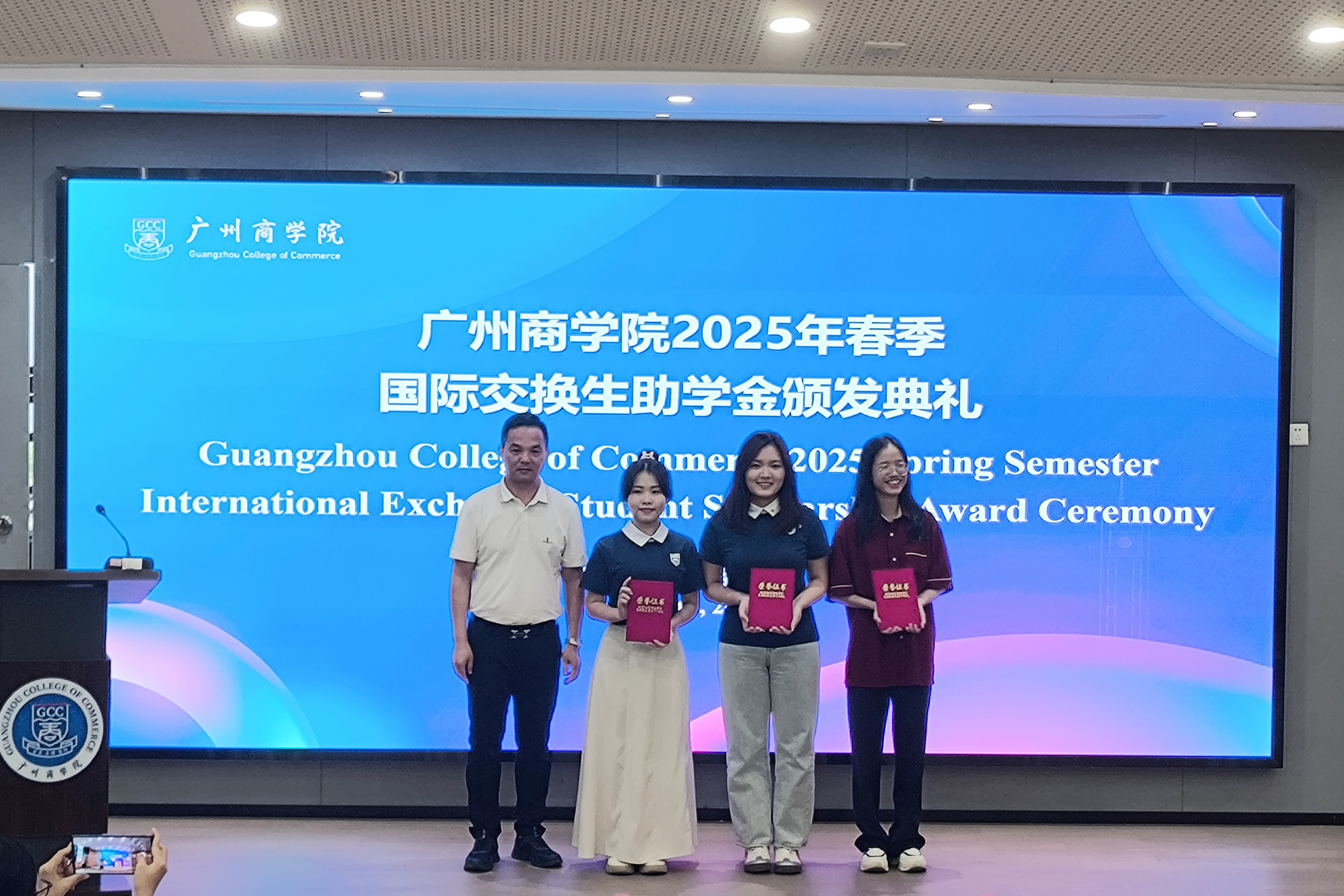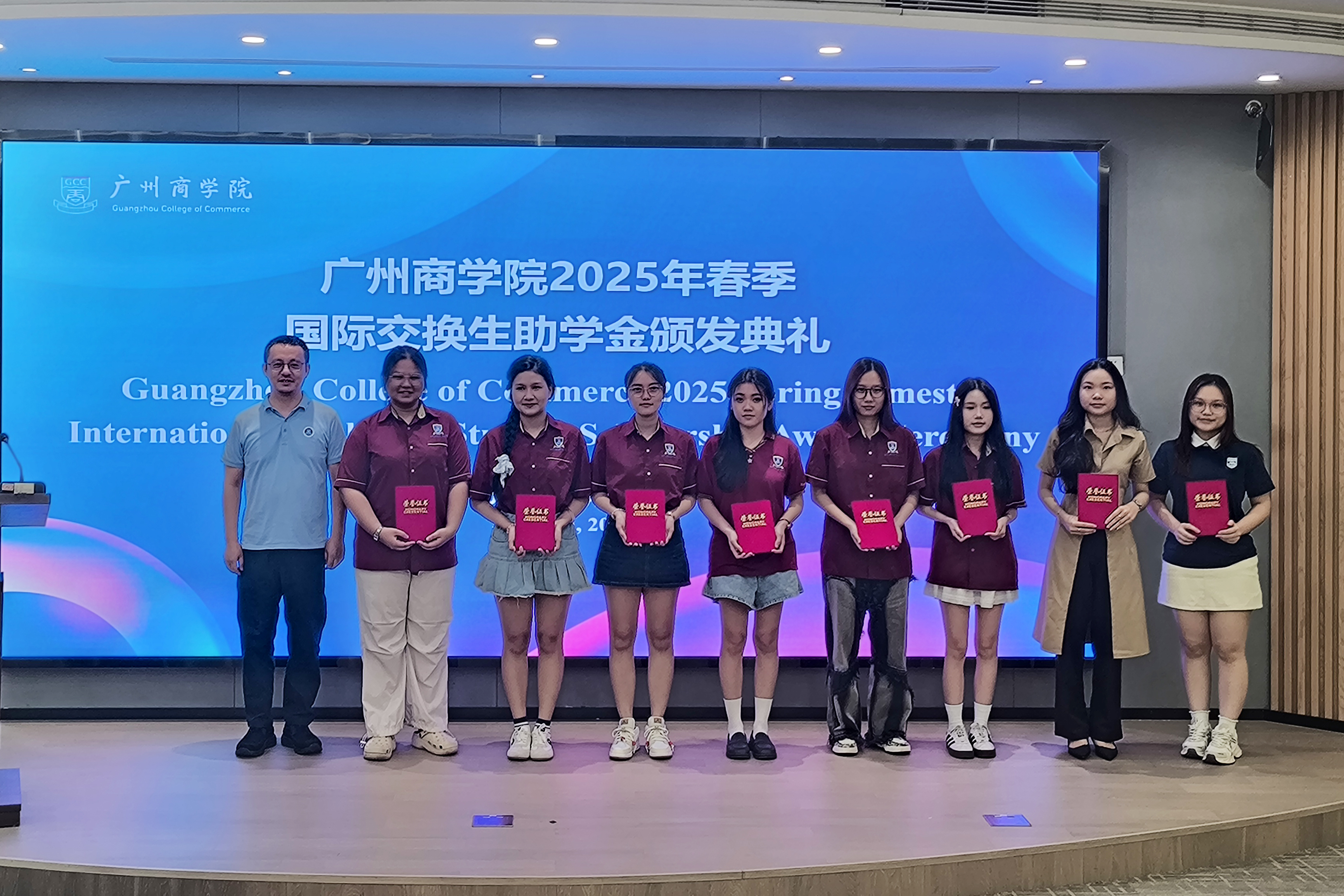 钟远辉宣读了2025年春季国际交换生助学金获得者名单。本年度春季助学金覆盖了来自越南阮必成大学、越南商业大学与越南雒鸿大学的优秀学子。名单宣读完毕后,洪振华、袁鑫、杨粤青、钟远辉依次为获奖学生颁发了荣誉证书。