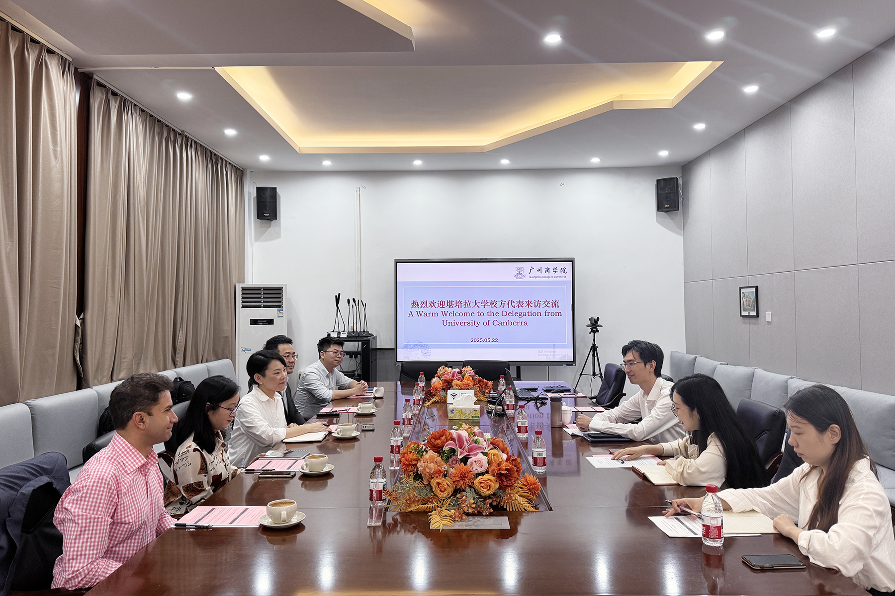 5月22日,澳大利亚堪培拉大学校方代表一行来访3044永利洽谈项目合作。堪培拉大学北亚业务发展经理Gao Ling、堪培拉大学商业、政府与法律学院商学学士项目主任Tracy Yang、堪培拉大学学院市场与学生招生主任Michael Kok、堪培拉大学科学技术学院专业实践与领导力高级讲师Ehssan Sakhaee、堪培拉大学和堪培拉大学学院北亚市场营销与招生经理Byron Ji,3044永利副院长洪振华、院长助理李彩玲及3044永利相关教师出席会议。